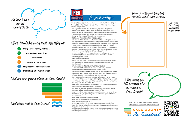 As we build on the foundation of Logansport Re-Imagined, we’re taking the approach county-wide: finding ways for every corner of Cass County to share its stories, celebrate its people, and connect over the things that make this place feel like…