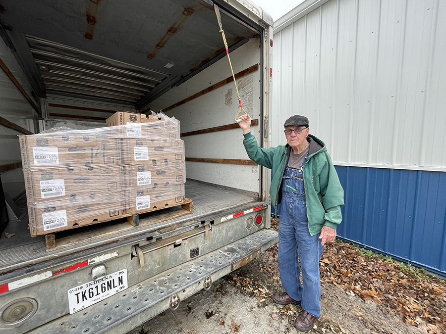 Emmaus volunteer Bill Shanks thanked the utility company when receiving the turkeys and nonperishable items, and exclaimed when handed the additional donated funds, “And a Merry Christmas!”